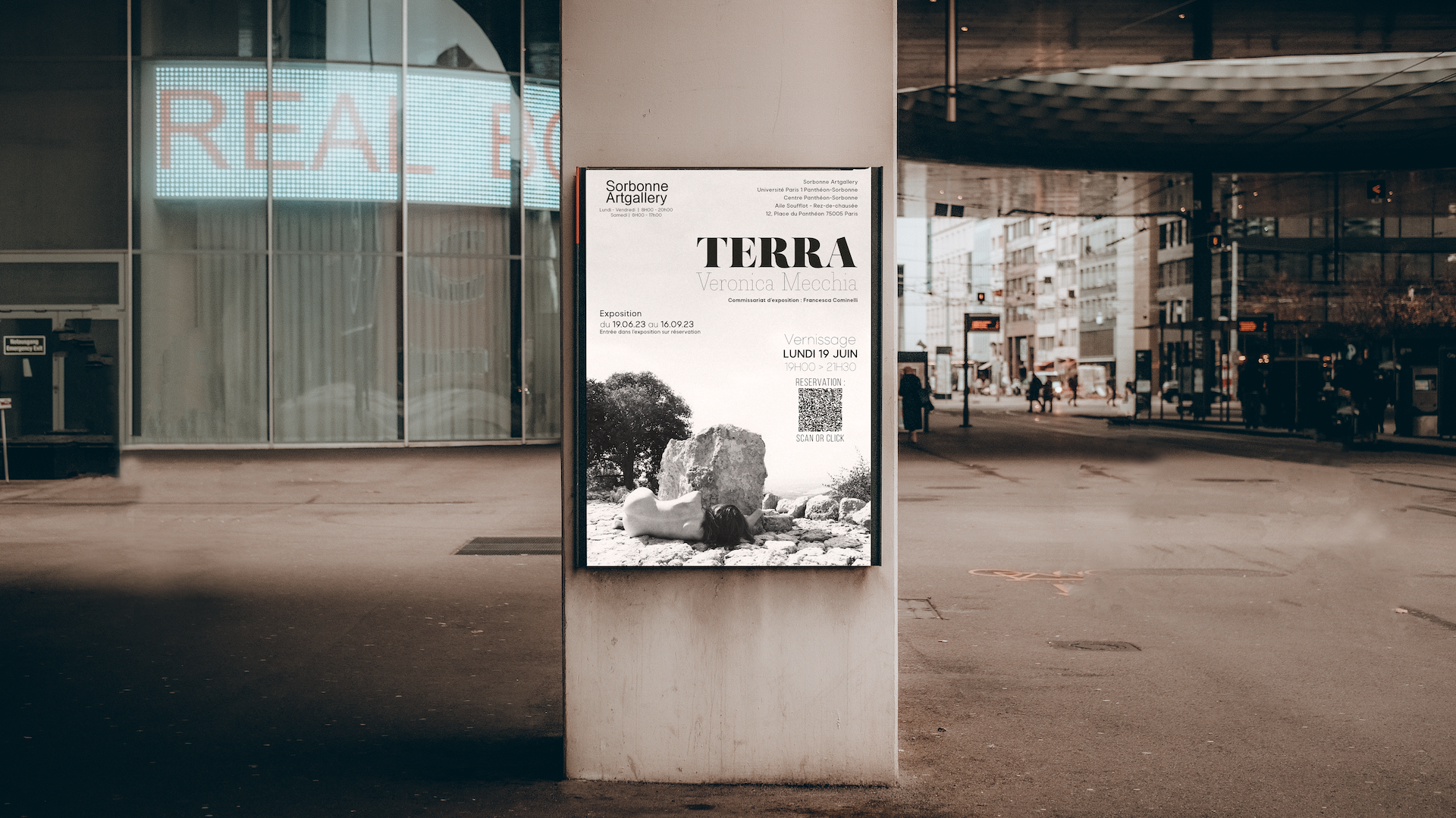 Exhibition of the artist Veronica Mecchia at Sorbonne Artgallery, PARIS. Tools : Indesign, Photoshop